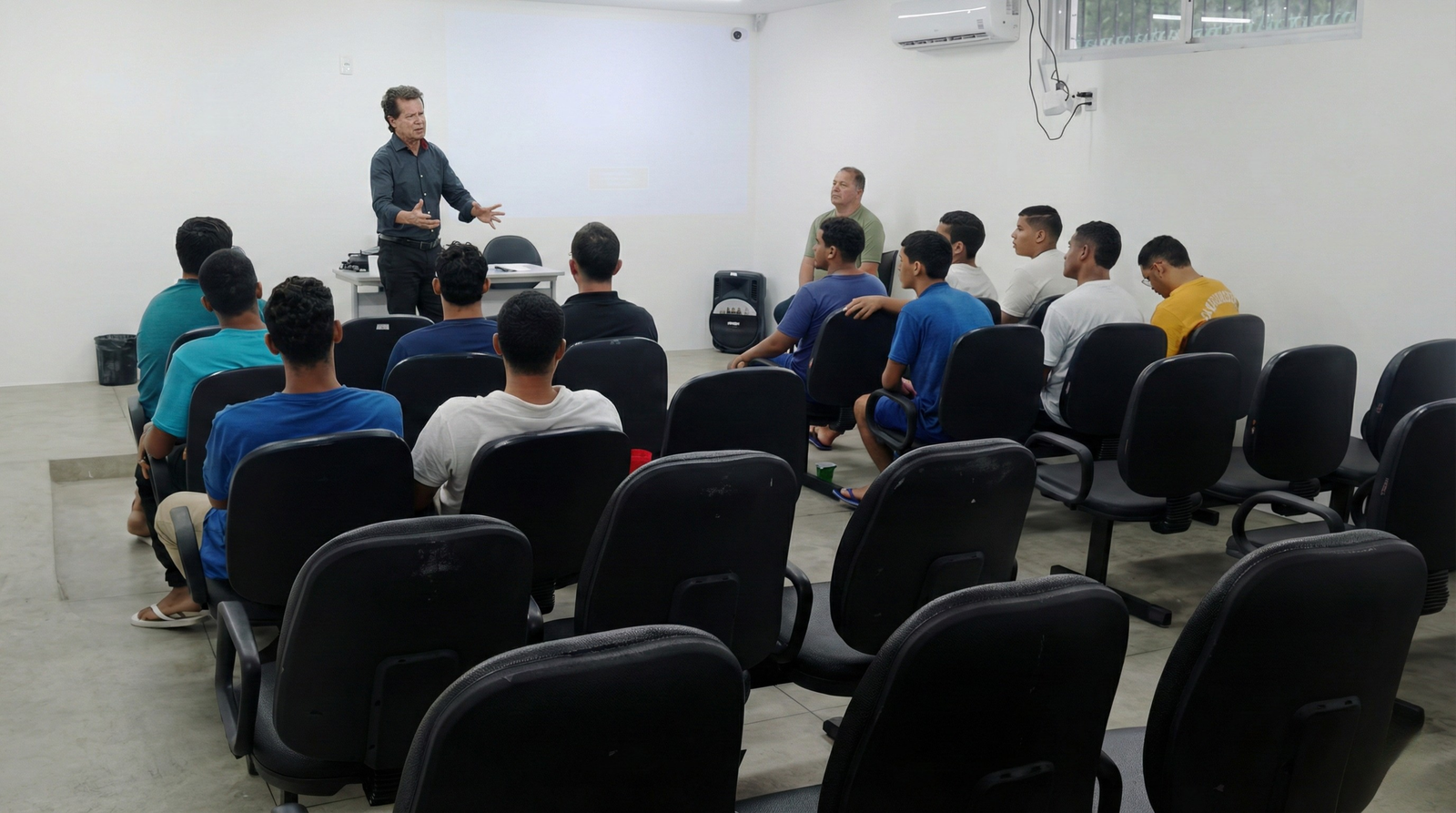 Os proprietários, que são irmãos, iniciaram uma perseguição e conseguiram deter o suspeito até encontrar com os agentes do Ronda no Bairro. No local, a equipe tentou intermediar um acordo entre as partes para a quitação da dívida. No entanto, o homem passou a proferir ameaças contra os integrantes da guarnição.
