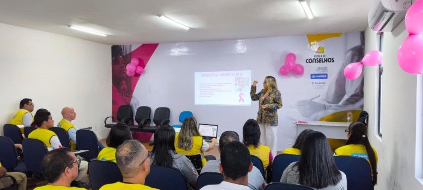 Em alusão à Campanha Outubro Rosa, colaboradores administrativos do Programa Ronda no Bairro participaram, na manhã desta quinta-feira (23), de uma palestra sobre o câncer de mama, ministrada pela assessora técnica da Secretaria de Estado da Saúde de Alagoas (Sesau), Andréya Monteiro.