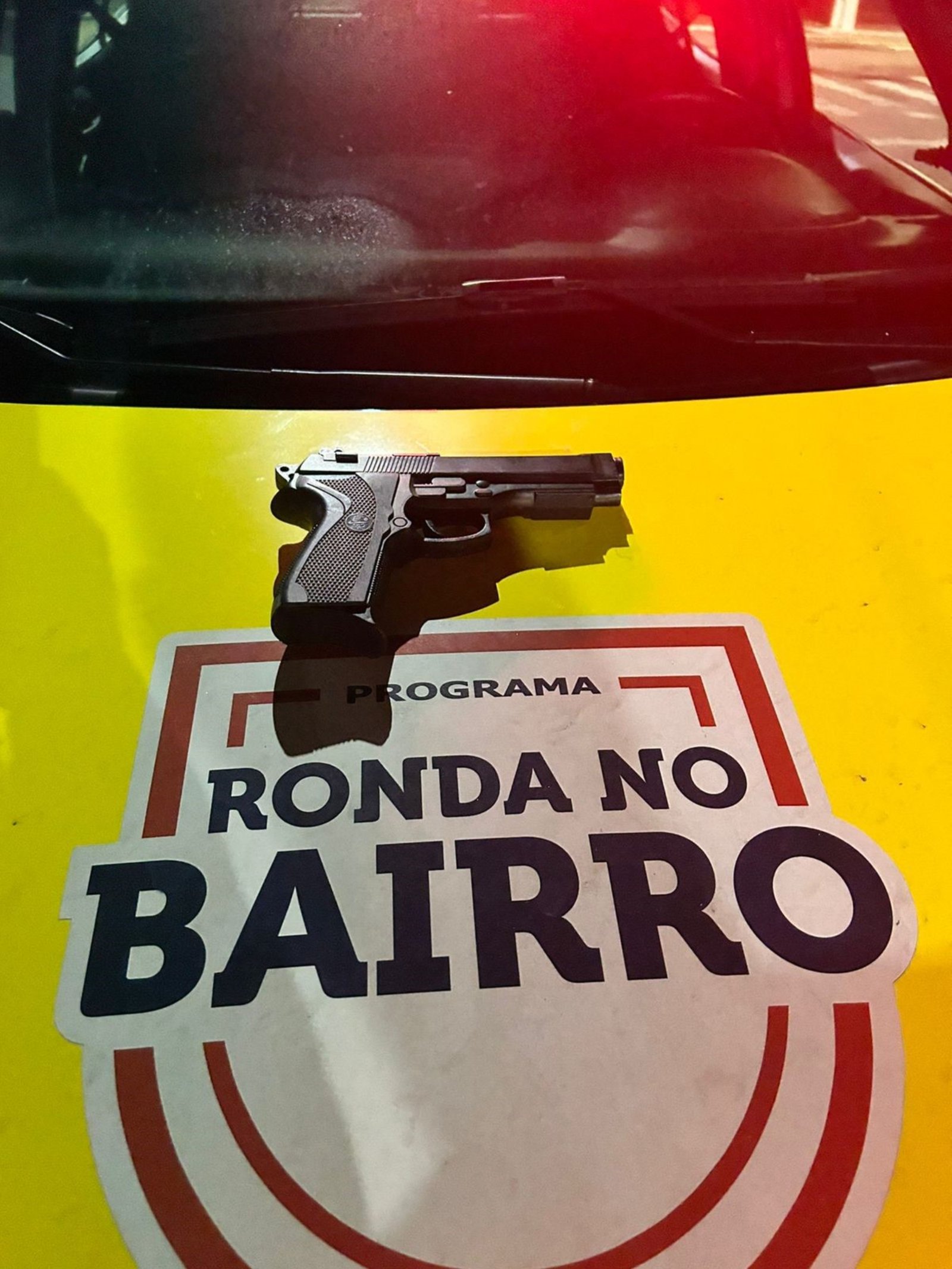 Foi feita a perseguição, sendo possível abordar um dos suspeitos, um menor de apenas 15 anos. Durante a busca pessoal, foi localizado em sua cintura um simulacro de pistola. O segundo indivíduo conseguiu fugir.